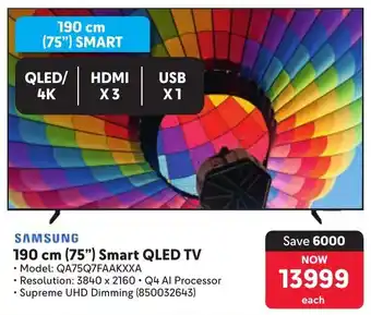 Samsung 190 cm 75" Smart QLED TV offers and online specials, directly from Makro