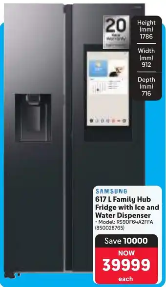 SAMSUNG Family Hub Fridge with Ice and Water Dispenser Offer at Makro