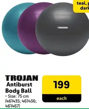 This special is available in various stores, view all products to get the cheapest Trojan Antiburst Body Ball. If you'd like to find out whether this product has a bigger discount in another store, check the category 'Wholesale'. You may also find these specials interesting: Trojan Antiburst Body Ball, Trojan Body Alignment Yoga Mat & 230mm Artificial Ball 719485.