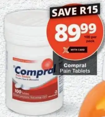 This special is available in various stores, view all products to get the cheapest Comprol Pain Tablets. If you'd like to find out whether this product has a bigger discount in another store, check the category 'Beauty & Pharmacy'. You may also find these specials interesting: Panado pain relief tablets, Nurofen Period Pain Tablets & Panado Pain & Fever Tablets.