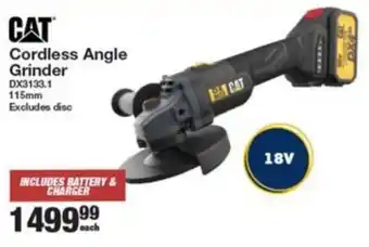 This special is available in various stores, view all products to get the cheapest CAT Cordless Angle Grinder. If you'd like to find out whether this product has a bigger discount in another store, check the category 'Electronics'. You may also find these specials interesting: CAT 2350W Angle Grinder 771377, CAT 2350W Angle Grinder & CAT 18V Angle Grinder 850032509.