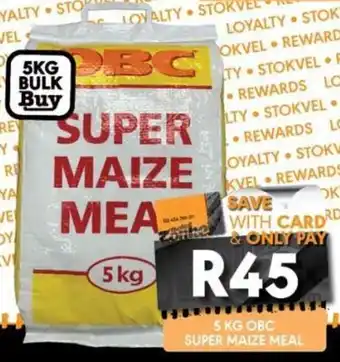 OBC Meat & Chicken offers a wide collection of products, besides the Obc super maize meal. Keep an eye on the weekly OBC Meat & Chicken catalogue to find the best specials and promotions. Besides Obc super maize meal, you can also find the following offers: Super white super maize meal, SUPER WHITE SUPER MAIZE MEAL 5kg & Super white super maize meal.