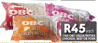 Obc value patties chicken, beef or pork 1 kg