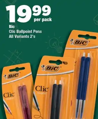 This special is available in various stores, view all products to get the cheapest Bic Clic Ballpoint Pens. If you'd like to find out whether this product has a bigger discount in another store, check the category 'Grocery stores'. You may also find these specials interesting: Bic Clic Ballpoint Pens, Bic Clic Ballpoint Pens & BIC CLIC BALLPOINT PENS.