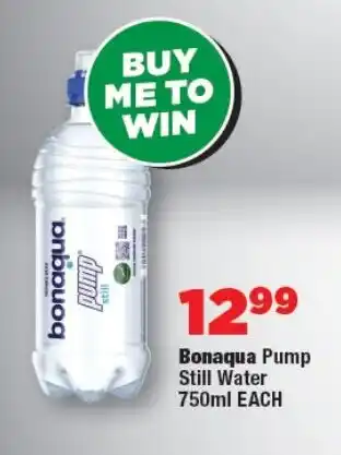 This special is available in various stores, view all products to get the cheapest Bonaqua Pump Still Water. If you'd like to find out whether this product has a bigger discount in another store, check the category 'Grocery stores'. You may also find these specials interesting: BONAQUA PUMP Still or Flavoured Water, BONAQUA PUMP Still or Flavoured Water & Bonaqua Pump Flavoured Still Water Assorted or Original.