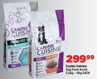 This special is available in various stores, view all products to get the cheapest Canine Cuisine Dog Food. If you'd like to find out whether this product has a bigger discount in another store, check the category 'Grocery stores'. You may also find these specials interesting: CANINE CUISINE Dog Food, Canine Cuisine Dog Food 10kg & Canine Cuisine Dog Food Asstd..