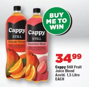 This special is available in various stores, view all products to get the cheapest Cappy Still Fruit Juice Blend. If you'd like to find out whether this product has a bigger discount in another store, check the category 'Grocery stores'. You may also find these specials interesting: Cappy Still Fruit Juice Blend Asstd., CAPPY Still 100% Fruit Juice Blend Assorted & CAPPY Still 100% Fruit Juice Blend Assorted.