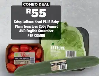 Crisp Lettuce Head PLUS Baby Plum Tomatoes 250g Punnet AND English Cucumber