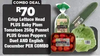 Crisp Lettuce Head PLUS Baby Plum Tomatoes 250g Punnet PLUS Green Peppers Duet AND English Cucumber