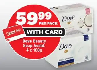 This special is available in various stores, view all products to get the cheapest Dove Beauty Soap. If you'd like to find out whether this product has a bigger discount in another store, check the category 'Grocery stores'. You may also find these specials interesting: Dove Beauty Soap Assorted 4 x 90g Per Pack, DOVE Beauty Bath Soap 90g 4 Pack & Dove Beauty Soap Bar 4 x 90g Assorted Per Pack.