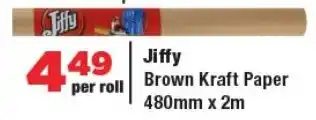 This special is available in various stores, view all products to get the cheapest Jiffy Brown Kraft Paper. If you'd like to find out whether this product has a bigger discount in another store, check the category 'Grocery stores'. You may also find these specials interesting: JIFFY BROWN KRAFT PAPER, Jiffy brown kraft paper & JIFFY KRAFT BROWN PAPER ROLL.