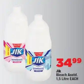 This special is available in various stores, view all products to get the cheapest Jik Bleach. If you'd like to find out whether this product has a bigger discount in another store, check the category 'Grocery stores'. You may also find these specials interesting: Jik Bleach, Jik Bleach & JIK Bleach Assorted 1.5lt.