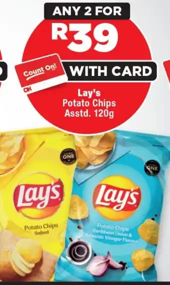 This special is available in various stores, view all products to get the cheapest Lay's Potato Chips. If you'd like to find out whether this product has a bigger discount in another store, check the category 'Grocery stores'. You may also find these specials interesting: Lay's Potato Chips, Lay's Potato Chips & Lay's Potato Chips-For 2 x 120g.