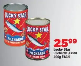 This special is available in various stores, view all products to get the cheapest Lucky Star Pilchards. If you'd like to find out whether this product has a bigger discount in another store, check the category 'Grocery stores'. You may also find these specials interesting: Lucky Star Pilchards, LUCKY STAR PILCHARDS & Lucky star pilchards.
