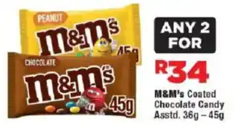 This special is available in various stores, view all products to get the cheapest M&M's Coated Chocolate Candy Asstd.. If you'd like to find out whether this product has a bigger discount in another store, check the category 'Grocery stores'. You may also find these specials interesting: m&m's Coated Chocolate Candy Assorted, m&m's Coated Chocolate Candy 45 g Assorted & M&M's Candy Coated Chocolates.