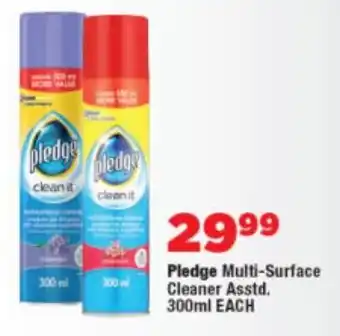 This special is available in various stores, view all products to get the cheapest Pledge Multi-Surface Cleaner Asstd.. If you'd like to find out whether this product has a bigger discount in another store, check the category 'Grocery stores'. You may also find these specials interesting: PLEDGE Multi Surface or Wood Cleaner, PLEDGE Multi Surface or Wood Cleaner & Super Brite Multi-Surface Cleaner Asstd..