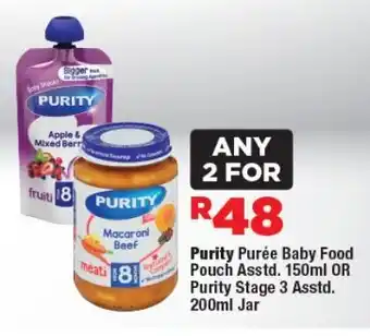 This special is available in various stores, view all products to get the cheapest Purity Purée Baby Food Pouch OR Purity Stage 3 Jar. If you'd like to find out whether this product has a bigger discount in another store, check the category 'Grocery stores'. You may also find these specials interesting: Purity Baby Food Pouch/ Jar All Variants, Purity baby foods jar/ pouch & PURITY Pouch/ 2nd Food Jar Assorted.