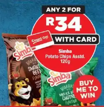 This special is available in various stores, view all products to get the cheapest Simba Potato Chips Asstd.. If you'd like to find out whether this product has a bigger discount in another store, check the category 'Grocery stores'. You may also find these specials interesting: SIMBA Potato Chips, Simba potato chips & SIMBA Potato Chips.