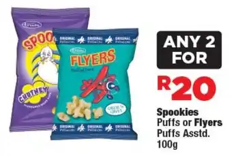 OK Foods offers a wide collection of products, besides the Spookies Puffs or Flyers Puffs. Keep an eye on the weekly OK Foods catalogue to find the best specials and promotions. Besides Spookies Puffs or Flyers Puffs, you can also find the following offers: Spookies or flyers snack puffs, TRUDA Spookies Maize Puffs Assorted/ Flyers Cheese & Chives Flavoured Puffed Corn & Master Flipz Puffs.
