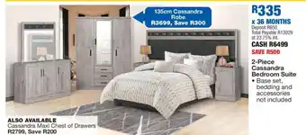 This special is available in various stores, view all products to get the cheapest 2-Piece Cassandra Bedroom Suite. If you'd like to find out whether this product has a bigger discount in another store, check the category 'Home furniture'. You may also find these specials interesting: Aston 2-piece bedroom suite, Kudu bedroom suite & 2-Piece Tisha Chaise Lounge Suite.