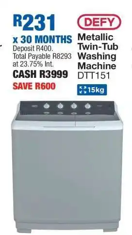 Defy Metallic Twin-Tub Washing Machine DTT151 offers and online specials, directly from OK Furniture