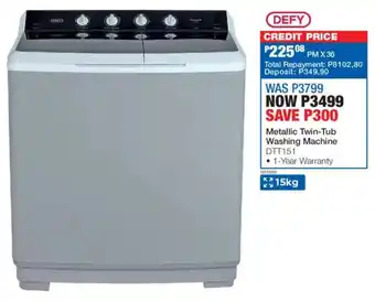 Defy Metallic Twin-Tub Washing Machine DTT151
