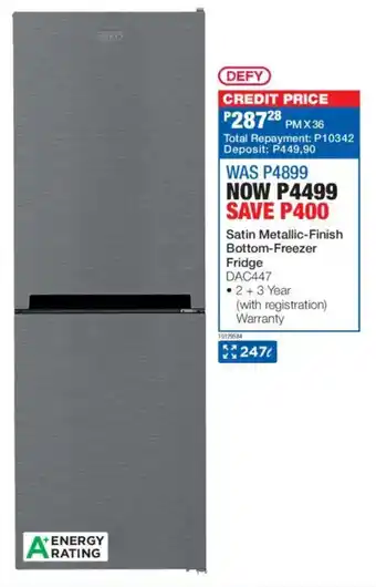 The Defy Satin Metallic-Finish Bottom-Freezer Fridge promotion runs from 27-12-2025 to 18-01-2026. If it has ended, don’t worry — you can view other similar specials. Follow the product category to be notified as soon as Defy Satin Metallic-Finish Bottom-Freezer Fridge is available again. Comparing Defy Satin Metallic-Finish Bottom-Freezer Fridge promotions helps you decide whether it's worth waiting for a lower price in a future offer. Keep checking our site for upcoming promotions.