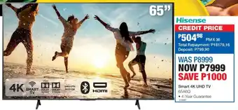 This special is available in various stores, view all products to get the cheapest Hisense Smart 4K UHD TV. If you'd like to find out whether this product has a bigger discount in another store, check the category 'Home furniture'. You may also find these specials interesting: Hisense 70" UHD Smart TV, Hisense 75" 190cm UHD Smart TV & Hisense 65" 165cm UHD Smart TV.