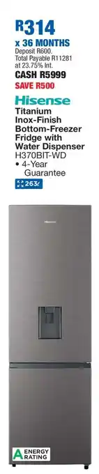 Now on special at OK Furniture: Hisense Titanium Inox-Finish Bottom-Freezer Fridge with Water Dispenser ✅ Valid from 26-01 to 15-02.