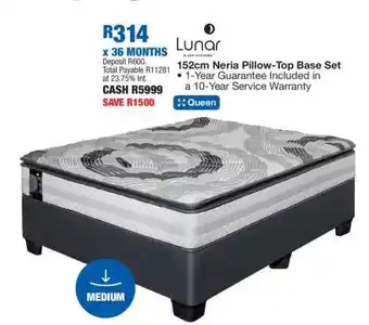 The price of Lunar 152cm Neria Pillow-Top Base Set can be found at the top of the page, together with the dates during which the special is available. You can also check the price in the current OK Furniture catalogue or on the OK Furniture website. Promotional offers assure you of buying OK Furniture products at the lowest price.
