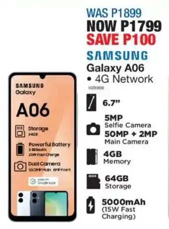 This special is available in various stores, view all products to get the cheapest Samsung Galaxy A06. If you'd like to find out whether this product has a bigger discount in another store, check the category 'Home furniture'. You may also find these specials interesting: Samsung Galaxy A26 5G, Samsung Galaxy A07 & Samsung Galaxy A07.