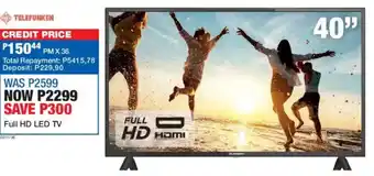 This special is available in various stores, view all products to get the cheapest Telefunken Full HD LED TV. If you'd like to find out whether this product has a bigger discount in another store, check the category 'Home furniture'. You may also find these specials interesting: TELEFUNKEN Full HD LED TV, Telefunken Full HD LED TV & Hisense Full HD LED TV 43A3Q.