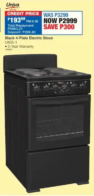 Univa Black 4-Plate Electric Stove promotion at OK Furniture