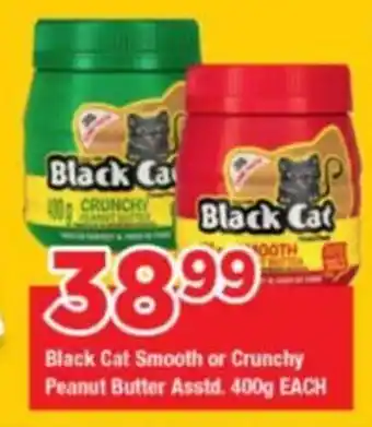This special is available in various stores, view all products to get the cheapest Black Cat Smooth or Crunchy Peanut Butter. If you'd like to find out whether this product has a bigger discount in another store, check the category 'Grocery stores'. You may also find these specials interesting: Black Cat Smooth or Crunchy Peanut Butter Asstd., Black Cat Smooth Or Crunchy Peanut Butter-For 2 x 400g & Black Cat Peanut Butter Smooth OR Crunchy 400 g.