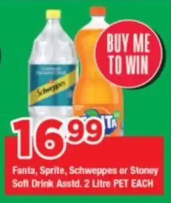 Fanta, Sprite, Schweppes or Stoney Soft Drink 2 L