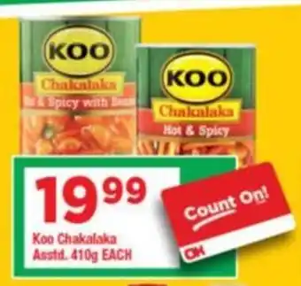 OK Grocer offers a wide collection of products, besides the Koo Chakalaka. Keep an eye on the weekly OK Grocer catalogue to find the best specials and promotions. Besides Koo Chakalaka, you can also find the following offers: KOO CHAKALAKA, Koo chakalaka & KOO Chakalaka.