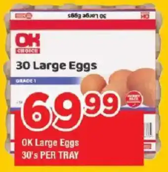 This special is available in various stores, view all products to get the cheapest OK Large Eggs. If you'd like to find out whether this product has a bigger discount in another store, check the category 'Grocery stores'. You may also find these specials interesting: OK Large Eggs, Barney's Large Eggs & Top Lay Large Eggs.