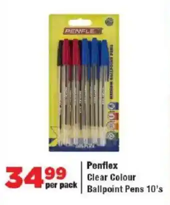 This special is available in various stores, view all products to get the cheapest Penflex Clear Colour Ballpoint Pens. If you'd like to find out whether this product has a bigger discount in another store, check the category 'Grocery stores'. You may also find these specials interesting: Penflex Clear Colour Ballpoint Pens, Penflex ballpoint pens & Penflex Ballpoint Pens.