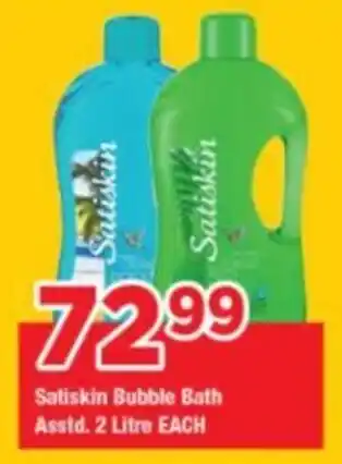 This special is available in various stores, view all products to get the cheapest Satiskin Bubble Bath. If you'd like to find out whether this product has a bigger discount in another store, check the category 'Grocery stores'. You may also find these specials interesting: Satiskin Bubble Bath, Satiskin bubble bath assorted & Satiskin Bubble Bath Asstd..
