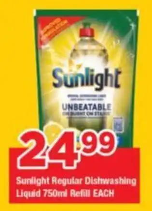 This special is available in various stores, view all products to get the cheapest Sunlight Regular Dishwashing Liquid Refill. If you'd like to find out whether this product has a bigger discount in another store, check the category 'Grocery stores'. You may also find these specials interesting: Sunlight Regular Dishwashing Liquid Refill, Sunlight Regular Dishwashing Liquid & Sunlight Regular Dishwashing Liquid.