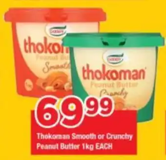 This special is available in various stores, view all products to get the cheapest Thokoman Smooth or Crunchy Peanut Butter. If you'd like to find out whether this product has a bigger discount in another store, check the category 'Grocery stores'. You may also find these specials interesting: THOKOMAN SMOOTH/CRUNCHY PEANUT BUTTER, Thokoman Smooth Peanut Butter & Thokoman peanut butter.