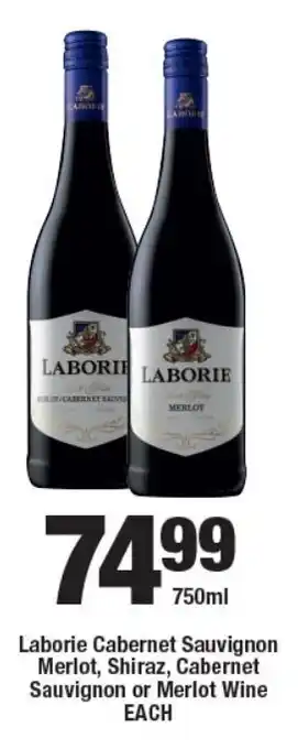 This special is available in various stores, view all products to get the cheapest Laborie Cabernet Sauvignon Merlot, Shiraz, Cabernet Sauvignon or Merlot Wine. If you'd like to find out whether this product has a bigger discount in another store, check the category 'Liquor stores'. You may also find these specials interesting: Laborie Cabernet Sauvignon Merlot, Shiraz, Cabernet Sauvignon or Merlot Red Wine, VAN LOVEREN Cabernet/ Merlot, Cabernet Sauvignon or Merlot & Swartland founders reserve cabernet sauvignon/ merlot.