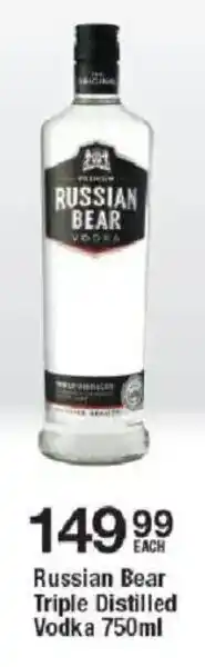 This special is available in various stores, view all products to get the cheapest Russian Bear Triple Distilled Vodka. If you'd like to find out whether this product has a bigger discount in another store, check the category 'Liquor stores'. You may also find these specials interesting: JAMESON Triple Distilled Irish Whiskey, Paddy Triple Distilled Irish Whiskey & Jameson Triple Distilled Irish Whiskey 750ml.