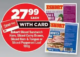 Eskort Sliced Sandwich Ham, Sliced Curry Brawn, Sliced Ham & Tongue or Sliced Pepperoni Loaf 180 g