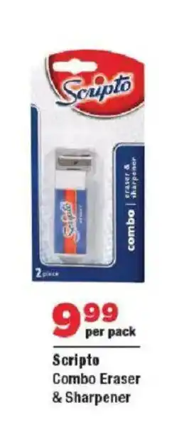 This special is available in various stores, view all products to get the cheapest Scripto Combo Eraser & Sharpener. If you'd like to find out whether this product has a bigger discount in another store, check the category 'Grocery stores'. You may also find these specials interesting: Scripto Combo Eraser & Sharpener, Scripto Scribbler Combo with 3 Pencils, Eraser and Sharpener & Scripto Scribbler Combo Pencils, Eraser & Sharpener.