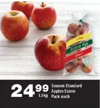 This special is available in various stores, view all products to get the cheapest Season Standard Apples Econo Pack. If you'd like to find out whether this product has a bigger discount in another store, check the category 'Grocery stores'. You may also find these specials interesting: Golden Delicious, Granny Smith or Season Standard Apples, Hollowfibre Standard Pillows 4-Pack & 2-Pack Hollowfibre Standard Pillows.