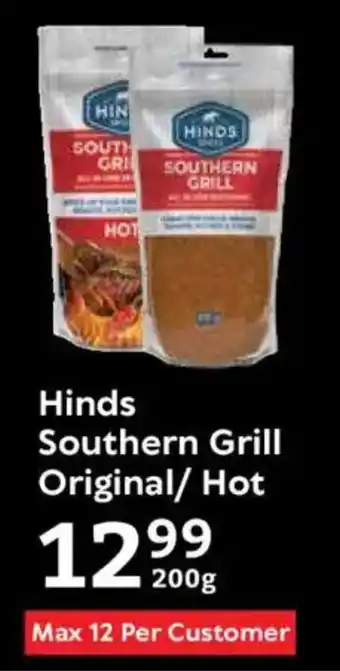 The Hinds Southern Grill Original/ Hot is now available with a discount at Oxford Freshmarket. On this page, you’ll find everything about the current price, promotion conditions, and how long the offer is valid. Also explore other offers and promotions for Hinds Southern Grill Original/ Hot to make a smart and cost-effective choice.