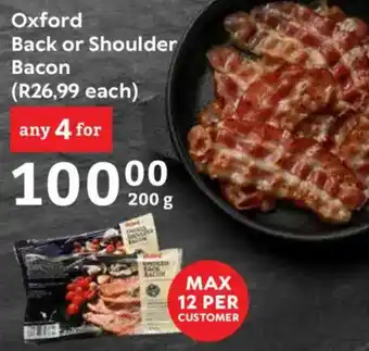 Oxford Freshmarket offers a wide collection of products, besides the Oxford Back or Shoulder Bacon. Keep an eye on the weekly Oxford Freshmarket catalogue to find the best specials and promotions. Besides Oxford Back or Shoulder Bacon, you can also find the following offers: Oxford Back or Shoulder Bacon, Renown Back Bacon & PnP Shoulder or Diced Bacon.