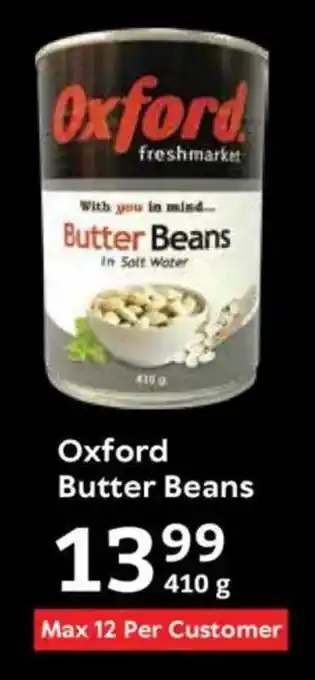 This special is available in various stores, view all products to get the cheapest Oxford Butter Beans. If you'd like to find out whether this product has a bigger discount in another store, check the category 'Grocery stores'. You may also find these specials interesting: Oxford Baked Beans, Oxford Baked Beans & Oxford Smooth Peanut Butter.
