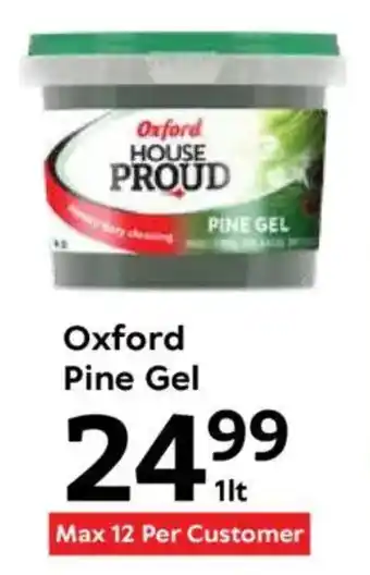 This special is available in various stores, view all products to get the cheapest Oxford Pine Gel. If you'd like to find out whether this product has a bigger discount in another store, check the category 'Grocery stores'. You may also find these specials interesting: Aco pine gel, TC Pine Gel & Econo Pine Gel.